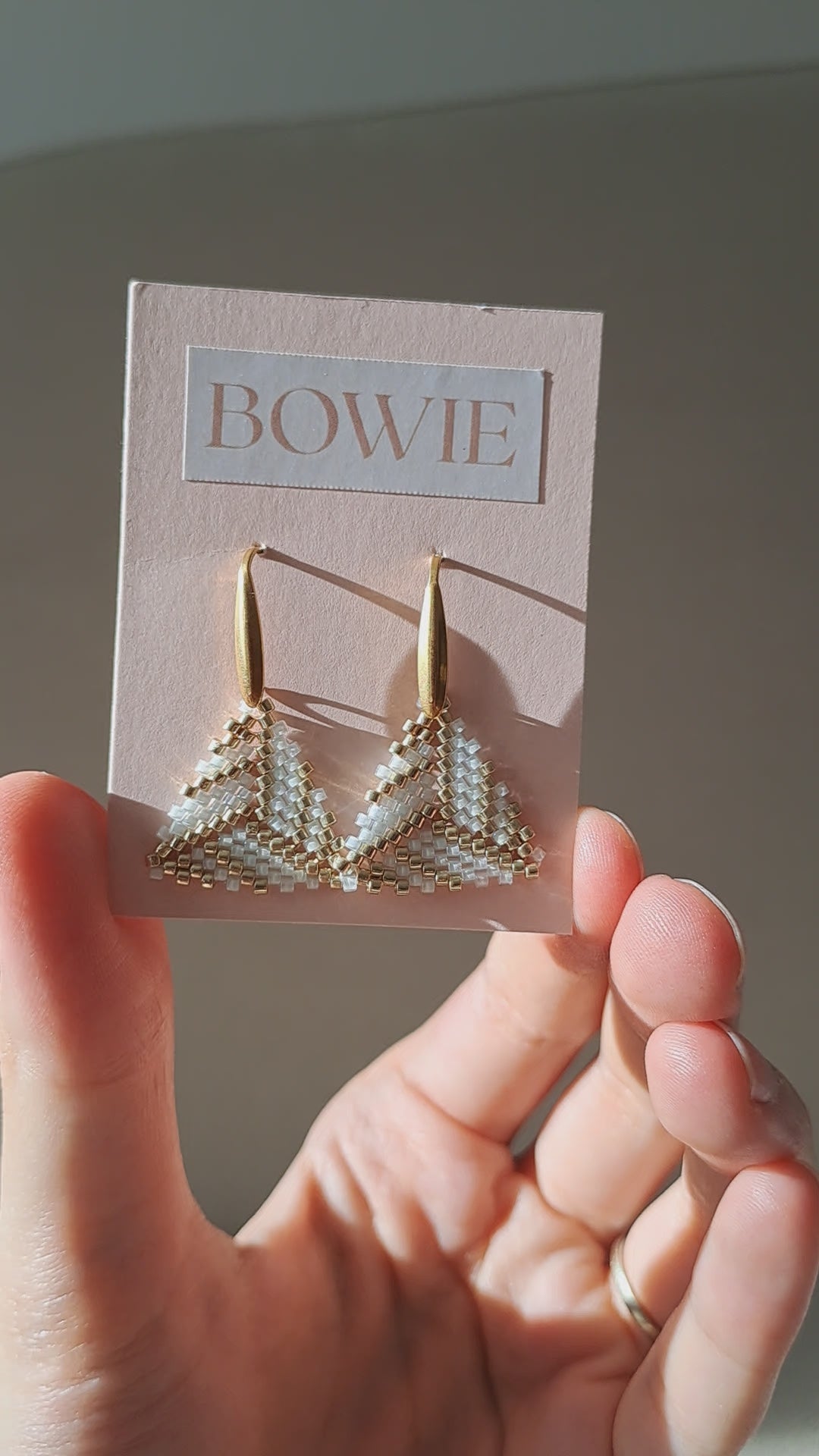 Zarif ve modern tasarıma sahip bu el yapımı üçgen miyuki küpeler, her kombininize renk katar. Yüksek kalite Japon miyuki boncuklarıyla tek tek işlenerek hazırlanmıştır. Küpenin aparatı paslanmaz çelikten üretilmiştir; alerji yapmaz, kararmaz ve atma yapmaz. Günlük kullanıma uygun olduğu kadar özel günlerde de şıklığınızı tamamlar.